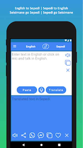 Aplikasi ini menawarkan berbagai fitur menarik, termasuk kemampuan untuk membagikan teks yang telah diterjemahkan ke aplikasi lain seperti WhatsApp dan Facebook Messenger. Dengan antarmuka yang sederhana dan penggunaan yang efisien, aplikasi ini tidak memakan banyak memori dan bekerja dengan cepat. Pengguna dapat dengan mudah beralih antara penerjemahan Inggris ke Sepedi dan Sepedi ke Inggris, menjadikannya pilihan ideal bagi siapa saja yang membutuhkan penerjemahan yang handal.